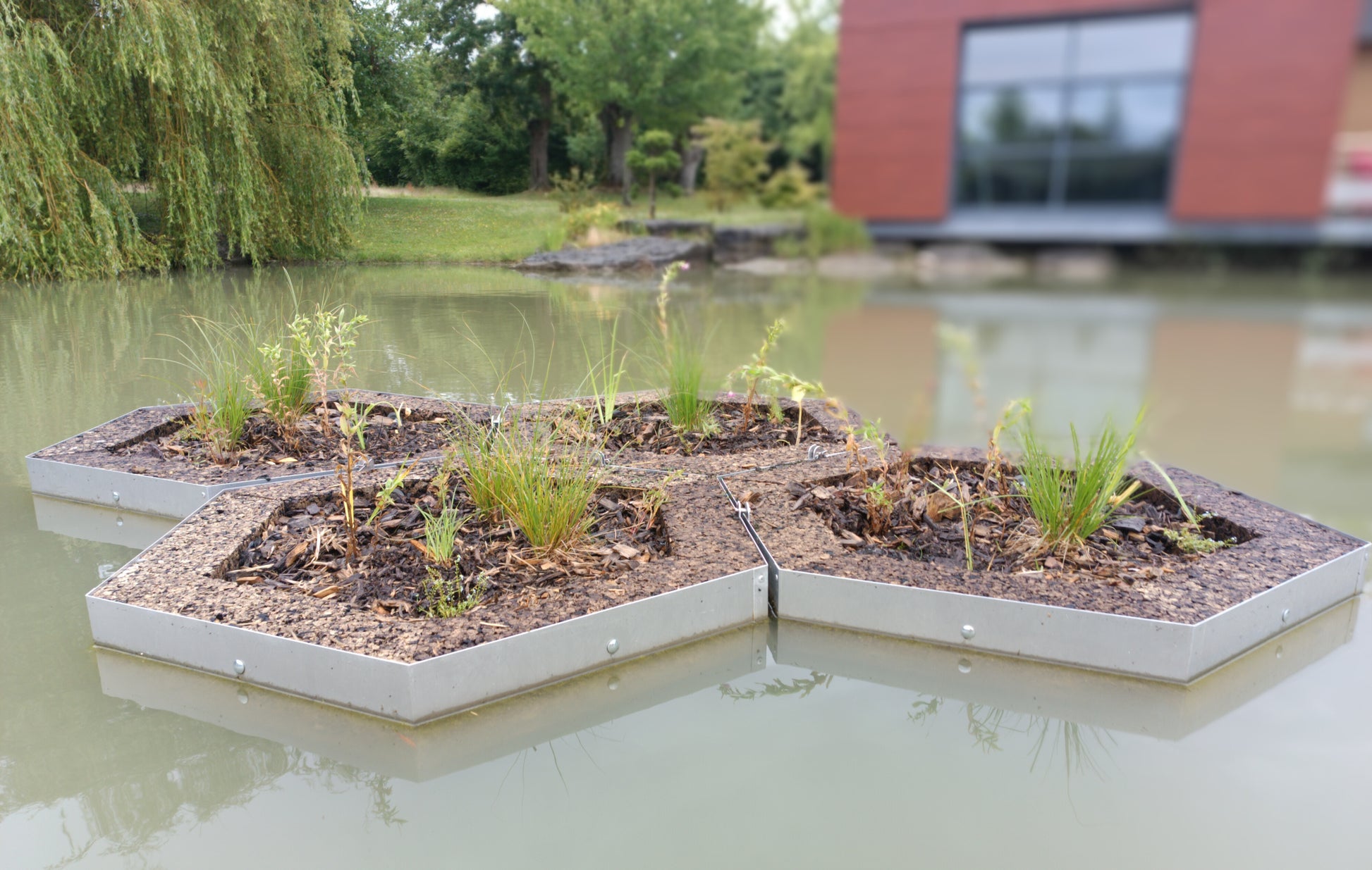 ALOÉ© est un module végétalisé flottant, modulable et clé en main de 1.27m². Conçu pour recréer des ilots, ou des berges végétalisées.